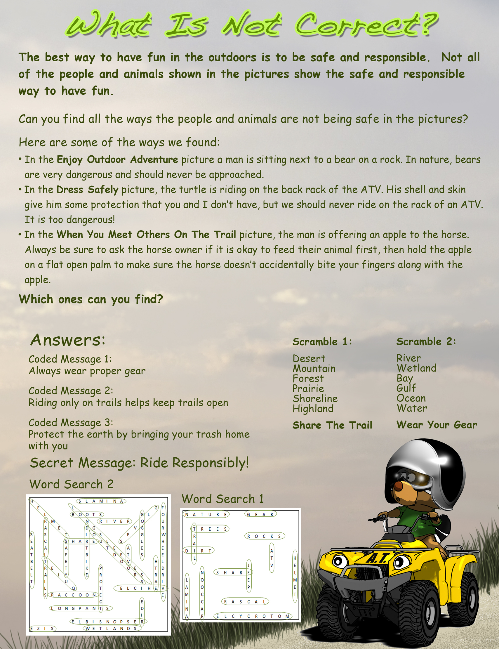 Activity pages that highlight NOHVCC’s safe and responsible ethic. Also great items to hand out at club events!